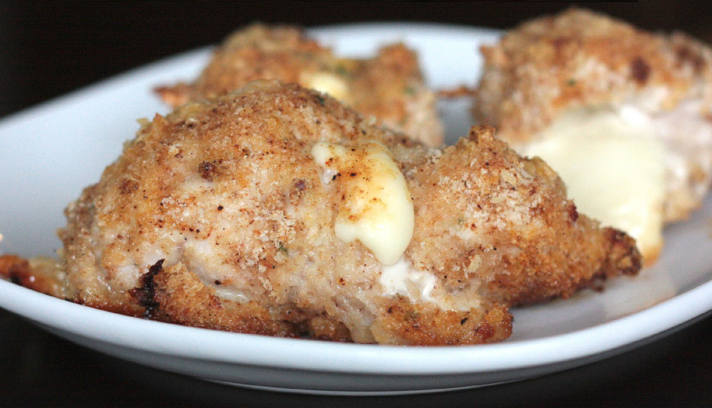 - Обмакните каждый куриный рулет со всех сторон в яйце, дайте излишкам стечь, затем обмакните в панировочную смесь.